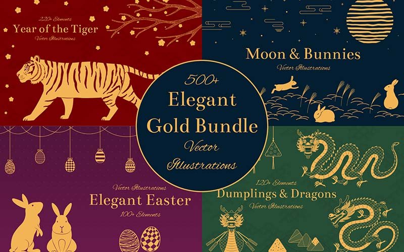 Inky brings to you the 500+ Elegant Gold Illustrations Bundle. With just a few clicks you can add an aura of gold to your projects!