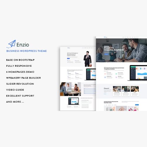 Enzio theme is modern and professional business WordPress theme with fuly responsive design. A great candidate for any type of website, for personal or business use, Enzio is easy to use and highly customizable. Designed with user friendliness in mind, Enzio sports a distinctly unique, modern look. The theme has its own super powerful theme control panel with lots of useful options and tools to manage your site: WPBakery Page Builder, Revolution Slider, Custom Icon Font, etc. and the theme apply the latest web technologies: Bootstrap 3, SASS, HTML5, CSS3, Font Awesome … Check the demos to see by yourself.