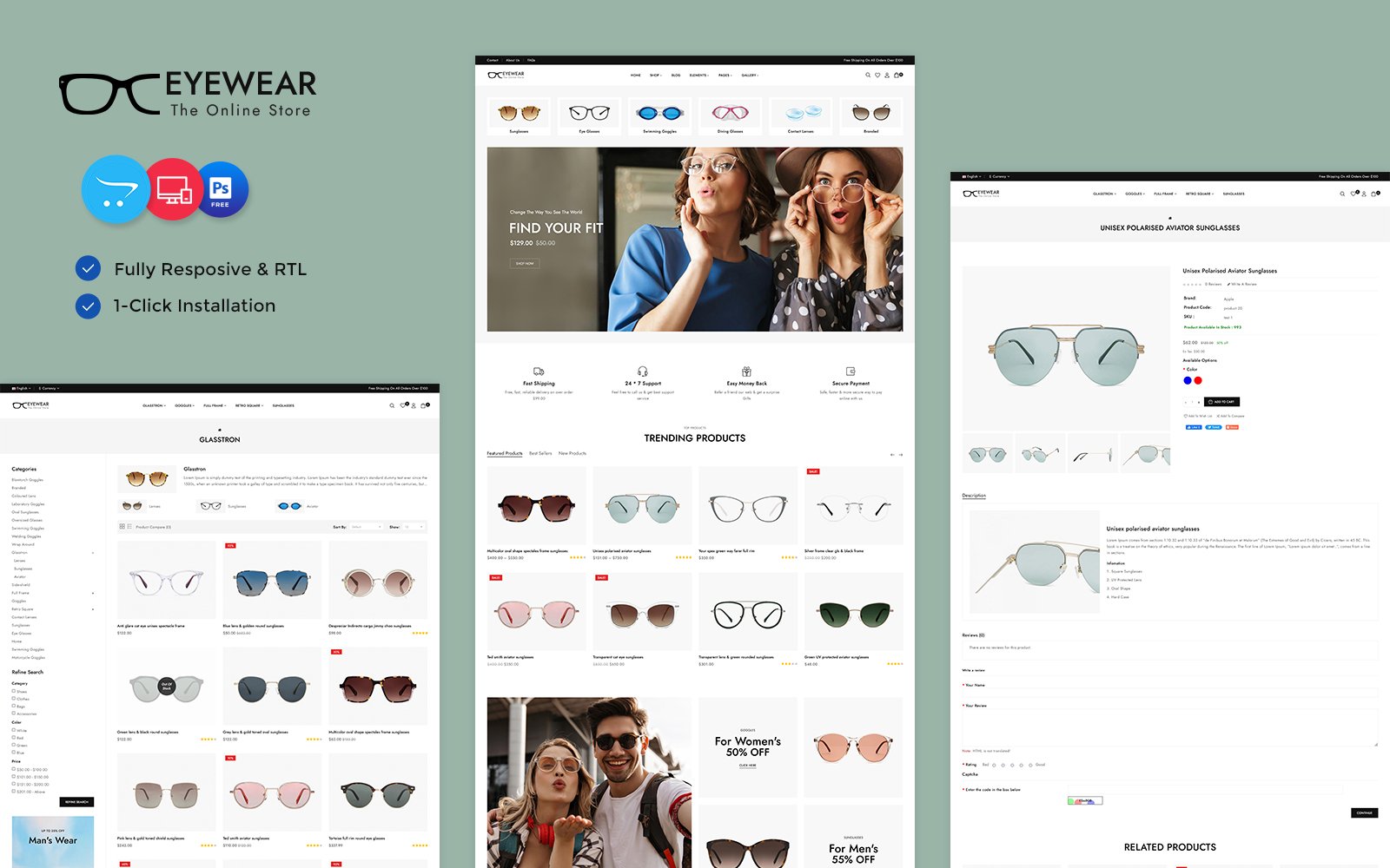 Eyewear – Eye Glasses, Goggles, and Sunglass Multipurpose Opencart Theme is a complete and versatile theme that is created for brands like eyewear, goggles, glasses, sunglasses, accessories, spectacles, eyeglasses, specs, eye lenses, lorgnette, eyewear & contact lens brands, including Bebe, Calvin Klein, Ray-Ban, Acuvue & Biofinity or many more. The eyewear store was designed to be different, and is perfect for all spiritual, mystical, and magical e-commerce stores! did you know: that this template requires no coding? The sky’s the limit here! And if you already have branding in place? No problem just swap it out with the images and layouts. With its minimal, yet unique design, this theme will build you a website that compliments your sense of style & professionalism.