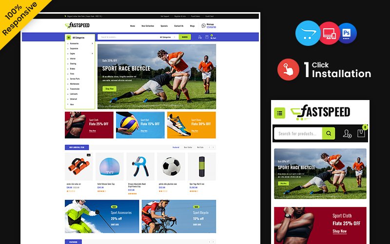 Fastspeed – Sports, Outdoors, and Travel Multipurpose Responsive OpenCart Store is specially developed for sportive site styles if you want to build a gym. health. sports accessories, or any other sports site design it’s the right theme for you! Super flexible responsive OpenCart theme designed for sporting clubs and much more. Fastspeed is characterized by universality, attractiveness, and easy customization. 100% of sign-in templates support mobile/tablet devices, which means you have a good layout and style in mobile/tablet devices instead of using the default layout on the desktop.