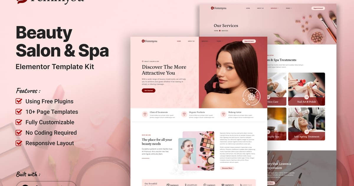 Femmyou – Beauty Salon & Spa Elementor Template Kit – Nulled Download – EmpireGPL
