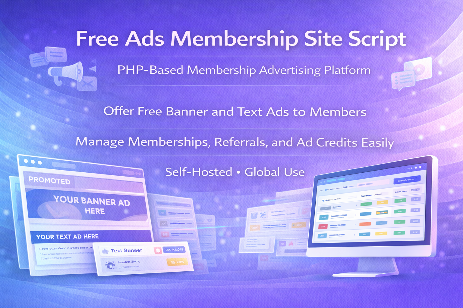 Create a membership‑based advertising platform with the Free Ads Membership Site Script. Offer free banner and text ads to members upon joining or referring others.