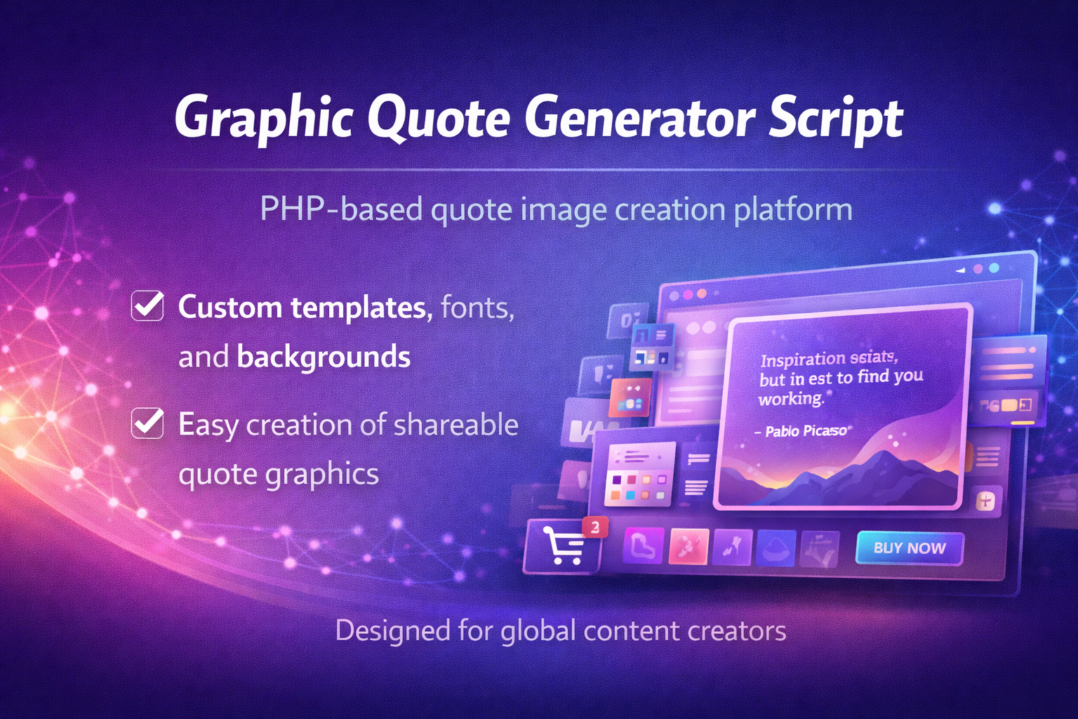 Launch your own AI-powered graphics quote generator website. Offer Free & Pro memberships, allow users to generate stunning quotes, and earn money via referrals. No coding skills needed.