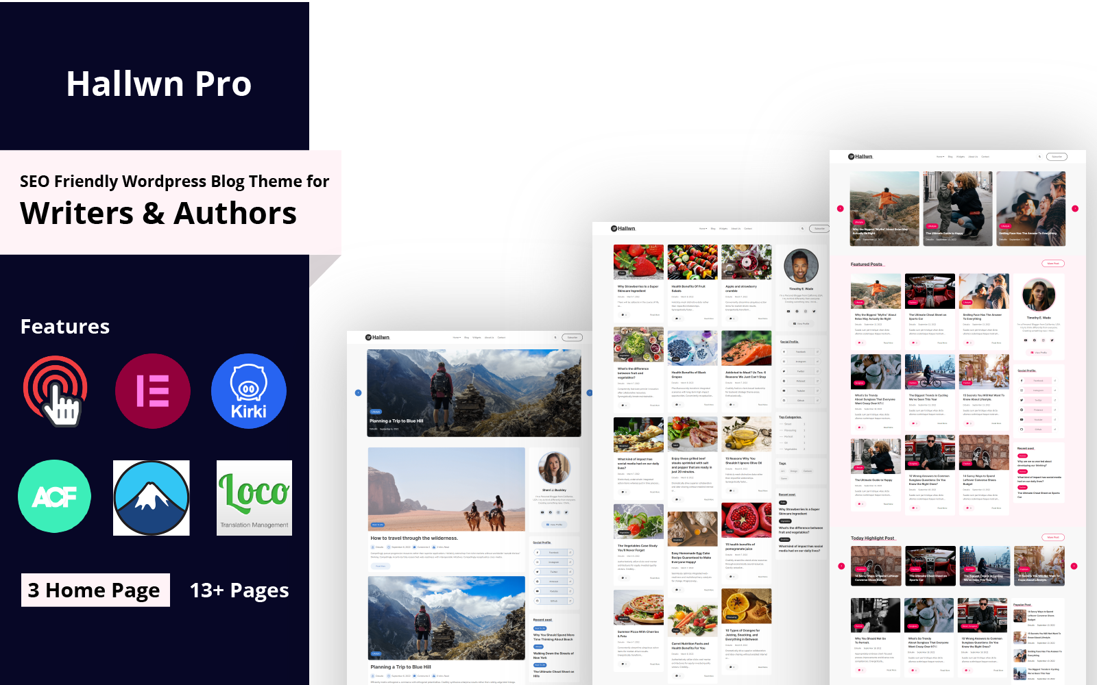 Hallwn Pro is a modern WordPress premium blog theme that’s great for sharing personal experiences, lifestyle, & travel blog writing. It is a simple, lightning-fast, elegant and perfect wordpress theme for blogs. It is fully mobile-friendly and best-in-class design for any bloggers & writers. Those who want to prove (EAT) expertise, authority, and trustworthiness should use this WordPress theme. This theme is also AdSense, and Ezoic supported. This blog site layout is fully compatible with Elementor and Gutenburg builder and so you can engage readers all over the world. Anyone can easily install and update the contents of a website using Hallwn Addon and Elementor drag & Drop builder.