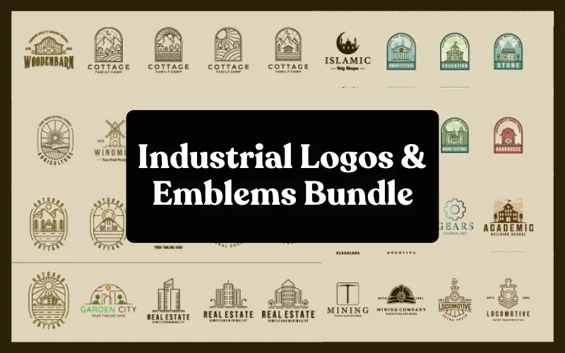 Instantly download this bundle of 200+ industrial logos consisting resizable EPS vectors for construction, automotive, plumbing, & maritime branding.