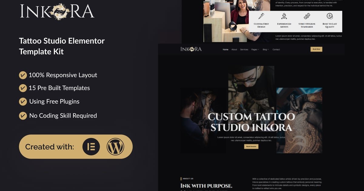 Inkora – Tattoo Studio Elementor Template Kit – Nulled Download – EmpireGPL