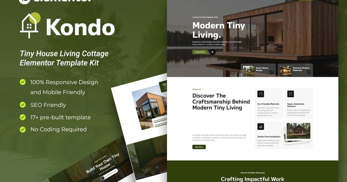 Kondo – Tiny House Living Cottage Elementor Template Kit – Nulled Download – EmpireGPL