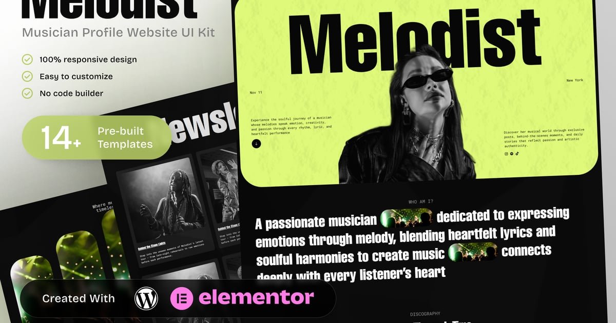 Melodist – Musician Profile Elementor Template Kit – Nulled Download – EmpireGPL