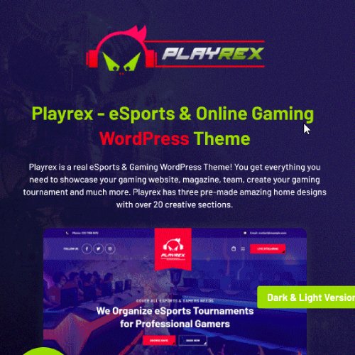 Playrex eSports & Gaming Clan News WordPress Theme is a real eSports & Gaming WordPress Theme! You get everything you need to showcase your gaming website, magazine, team, create your gaming tournament and much more. Playrex has three pre-made amazing home designs with over 20 creative sections. It also has an awesome About Page, Tournaments Page, Squad Page, Shop Page, Blog Page, Contact Us Page and more. If you love our Gaming WordPress Theme, don’t forget to rate us 5 stars and give us your feedback for better update.