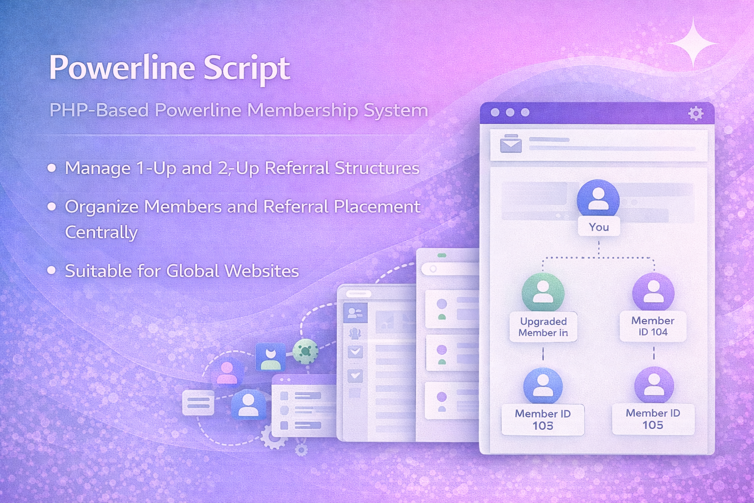 Powerline Script is a PHP membership system that supports 1-Up/2-Up referral structures and member management. Free installation included.