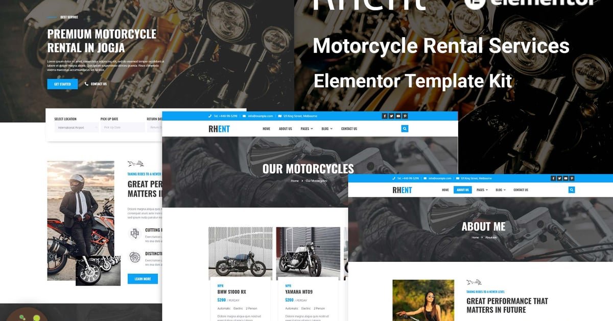 Rhent – Motorcycle Rental Services Elementor Template Kit – Nulled Download – EmpireGPL