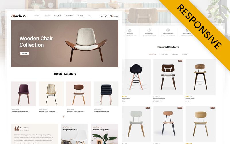 Rocker Furniture Store Opencart Responsive template is specially designed for store like furniture, wood, timber, home decor, craft, table, chair, art, light, handicraft, antique, kitchen, appliance, accessories, fashion, jewelry etc.. This template looking good with it’s awesome and cool color combination. Layout design is also unique to sale any types of product. Rocker theme supports multiple language & multiple currency to sell your items worldwide for your customers from other countries. Rocker theme is available with quick start package to install this theme on your domain with all demo content and graphics with only few steps without.
