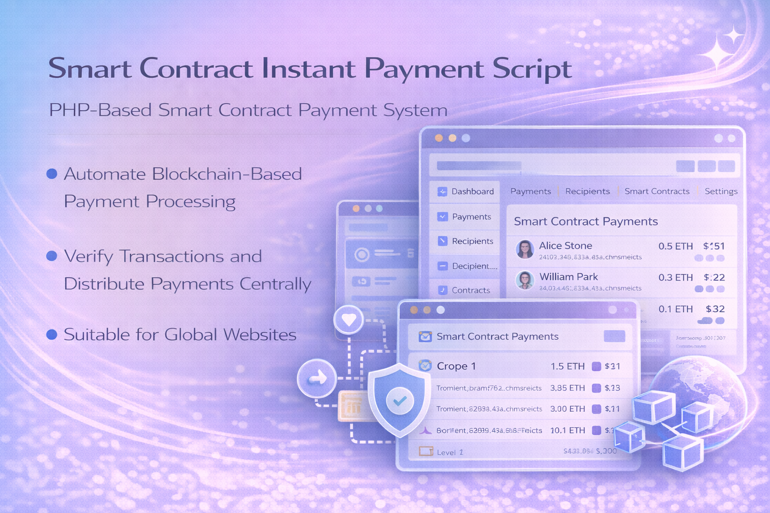 Smart Contract Instant Payment Script is a PHP solution integrating blockchain smart contracts to accept instant verified payments and automated payout distribution.