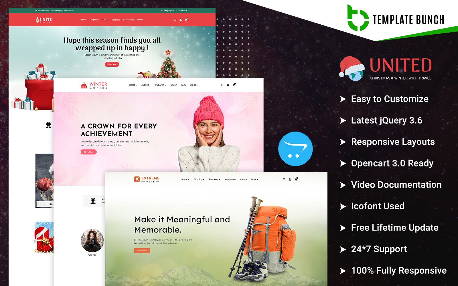 United – Christmas & Winter with Travel – Responsive OpenCart Theme for eCommerce – Description