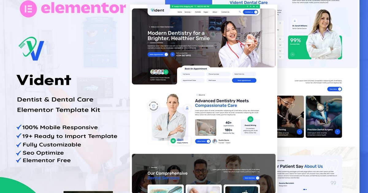 Vident – Dentist & Dental Care Elementor Template Kit – Nulled Download – EmpireGPL