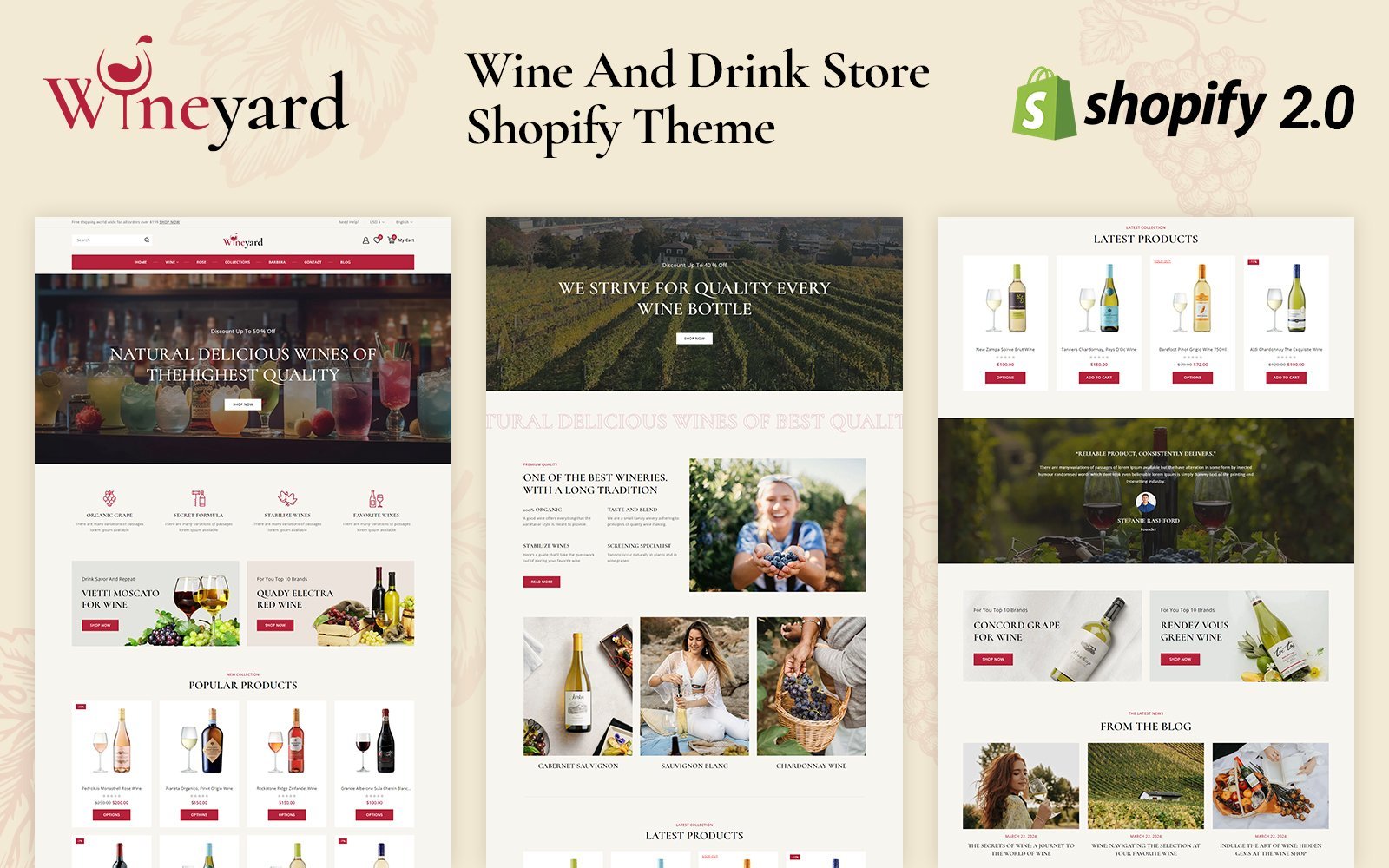 Wineyard is an elegant and professionally crafted Shopify 2.0 responsive theme designed for vineyards, wine shops, liquor stores, and premium beverage retailers. With a clean and sophisticated layout, Wineyard captures the essence of luxury and tradition, making it the perfect choice for showcasing wines, champagnes, spirits, and gourmet products in a visually appealing way.